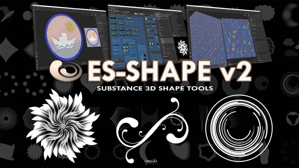 - ES-Shape components for Substance 3D Designer, Painter, Sampler et Generic hosts, in SBSAR format.